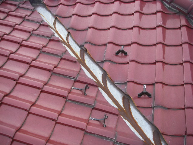 瓦のお宅はご注意下さい! 屋根の形状により、下記写真のように、瓦以外の素材が使われる箇所があります。 その素材がトタンだった場合は塗装がが必要になります。 (サビ腐食により雨漏り発生の可能性があります)