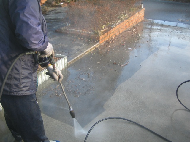 サービス作業の土間コン高圧洗浄!